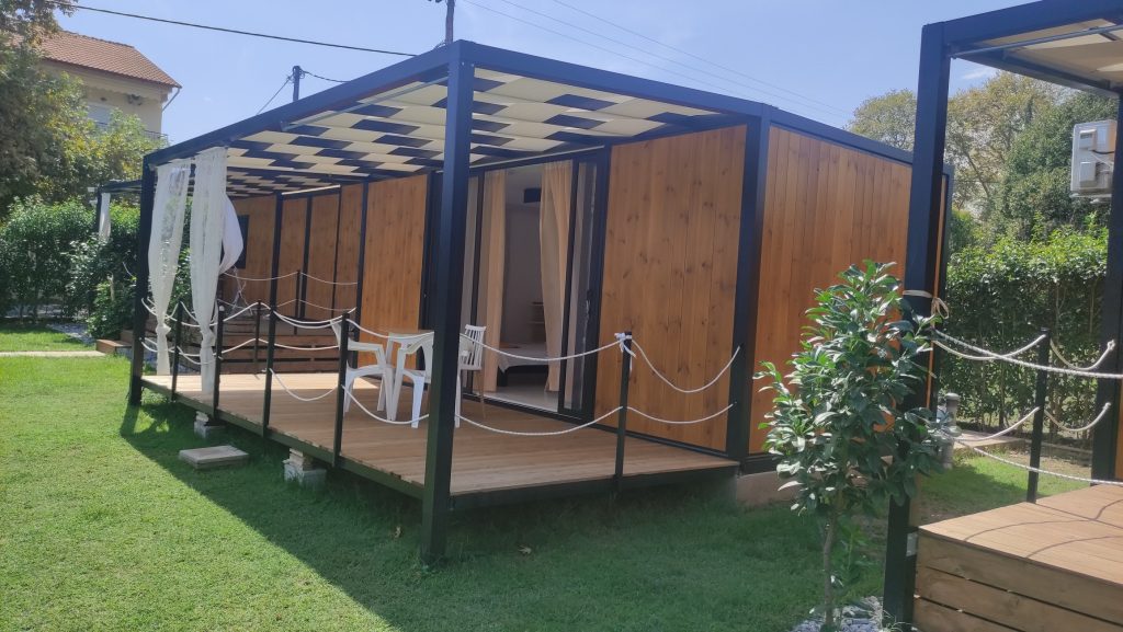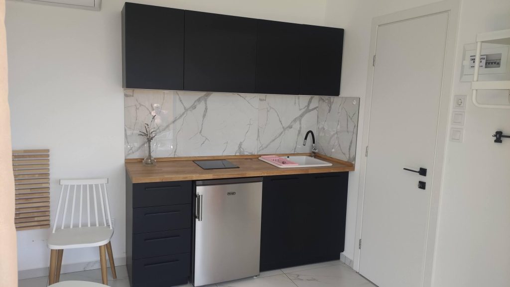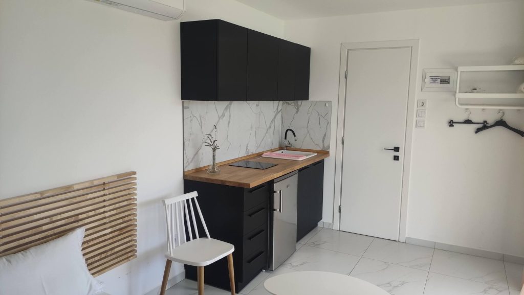 Experience contemporary luxury in our brand new wooden apartments. Each unit features a private garden and is located just 100 meters from the crystalline waters of Leptokarya beach. Designed for comfort, style, and relaxation.